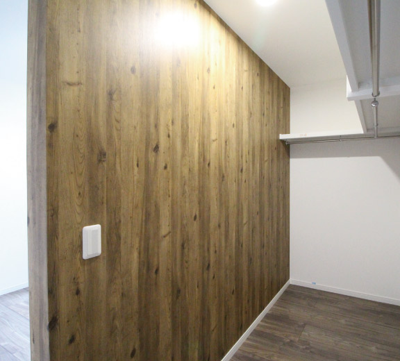 あると玄関をすっきりみせることができるシューズクローク。用途に応じてこちらはハンガー収納も付いたウォークスルータイプ。