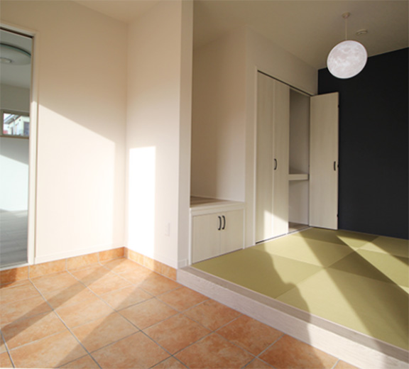1.インナーテラスから和室、リビングへと続く解放感ある間取り。