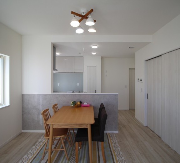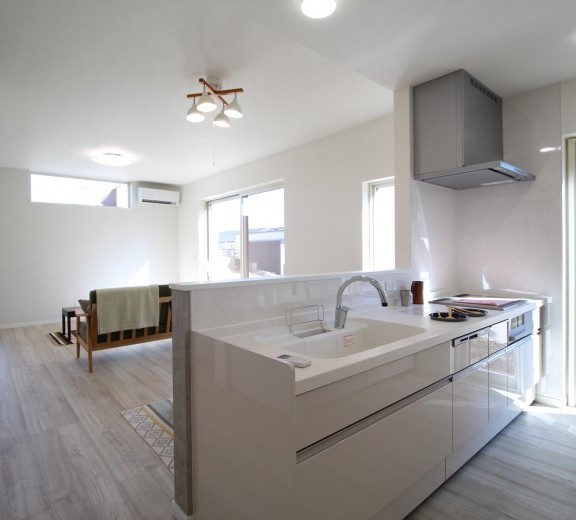 大きな窓から日の光が降り注ぐ、明るく開放感のある4LDKの平屋。