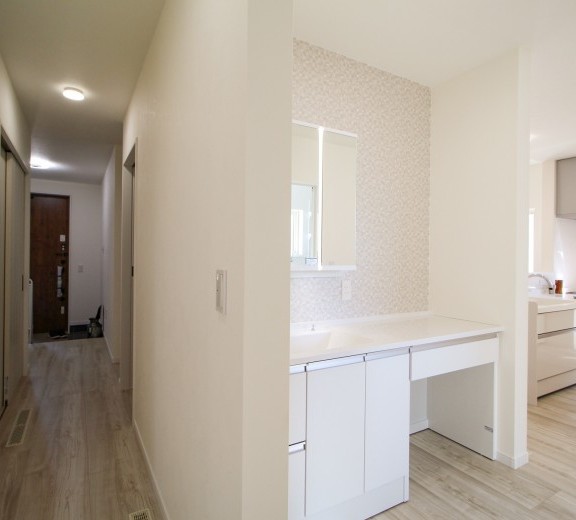 シューズクロークから洗面台の前を通ってキッチンへアクセスできる間取りになっています。