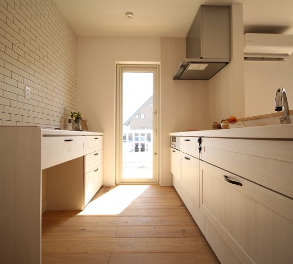 くすみカラーのクロスと木目調の床材で居心地の良い空間に。