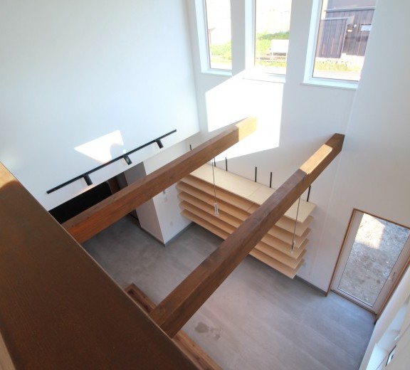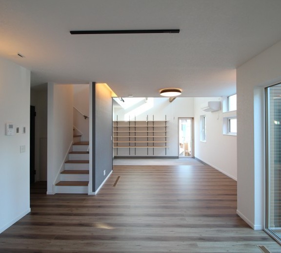 壁ではなく、吹き抜けや土間で緩やかに空間を繋ぐことで