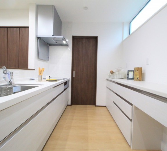 玄関→リビング→キッチン→洗面所→玄関と回遊できる作りになっております。