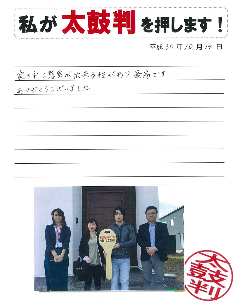 家の中に懸垂できる柱があり、最高です ありがとうございました
